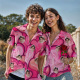 Home / Custom Couple Hawaiian Pink Heart Shirt Face Button-down Shirt Gifts For Couple