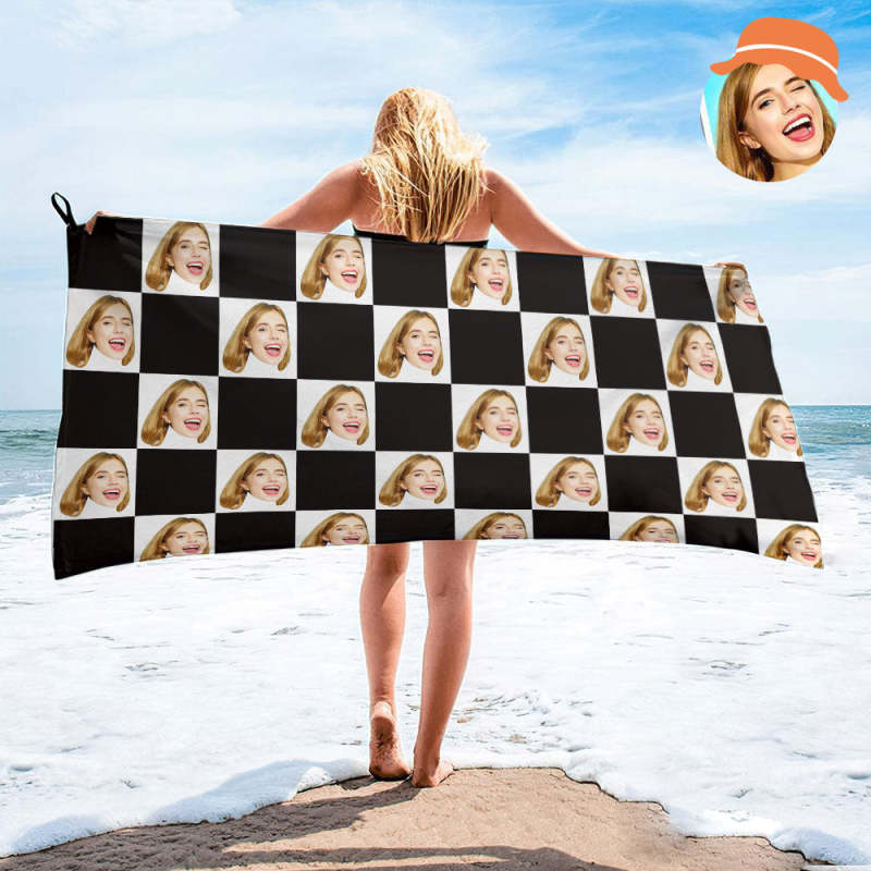 Home / Custom Face Chess board Beach Towel Personalized Photo Beach Towel Funny Gift