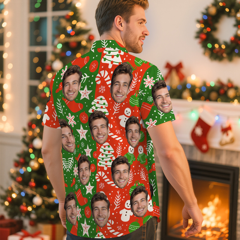 Custom Face Christmas Hawaiian Shirt Personalized Holiday Party Shirt Personalized Christmas Button-down Shirt