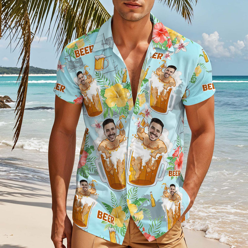 - Custom hawaiian shirts face all over print aloha beach shirt for men