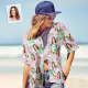 Custom Face Hawaiian Shirt Number in Wine Glass Pink And Green Sleeves Face Hawaiian Shirt Birthday Gift for Her