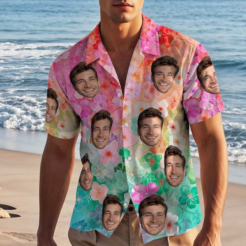 Home / Custom Face Hawaiian Shirt Personalized Photo Beach Shirt 3D Effect Floral shirt