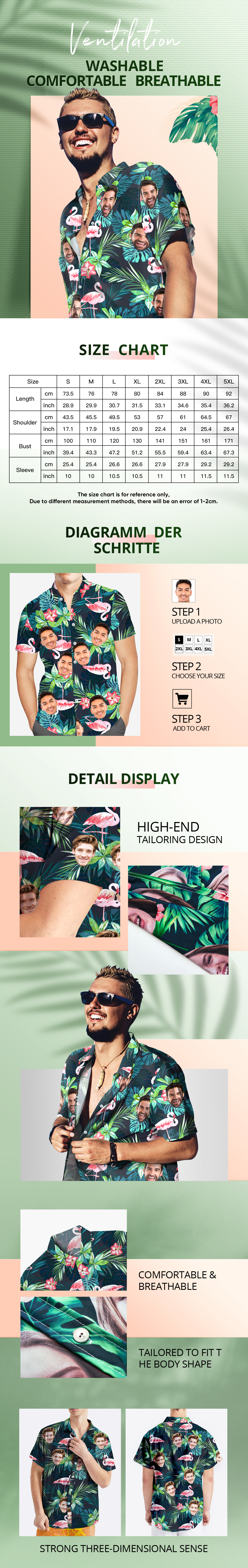 • Sizes: S, M, L, XL, XXL, XXXL, XXXXL, XXXXXL. Please calculate your size from the measurement chart.