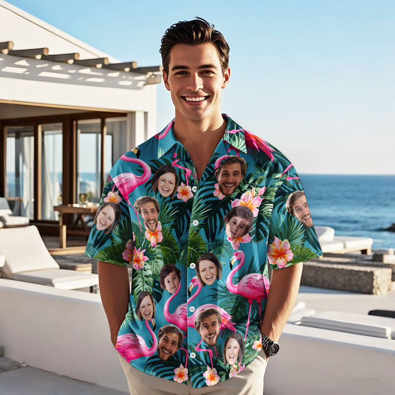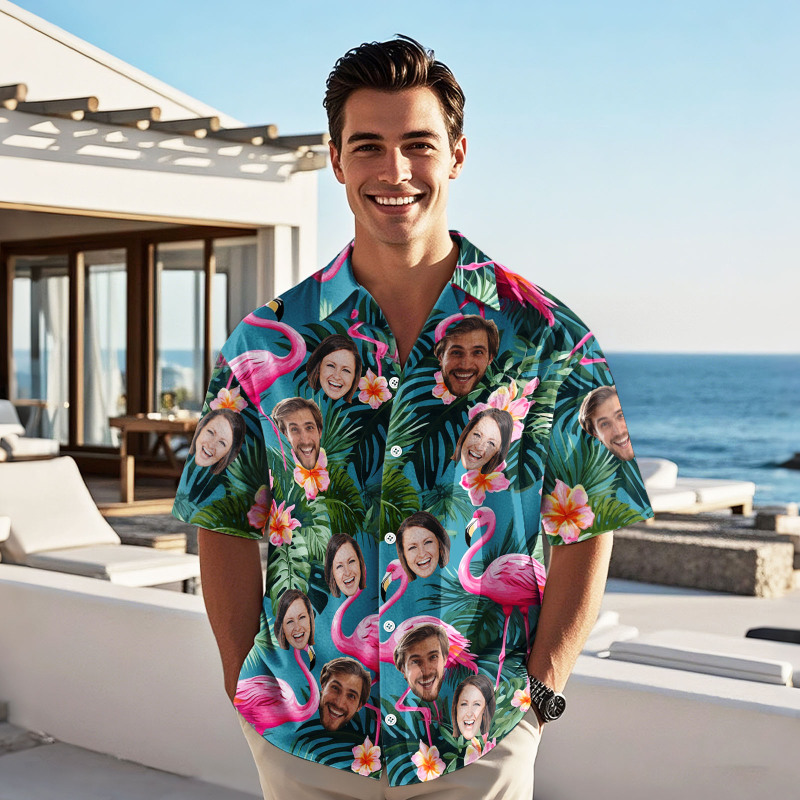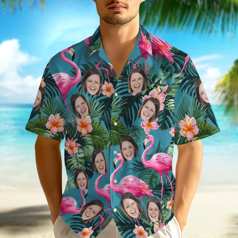 Home / Custom Face Hawaiian Shirt Personalised Pink Flamingo Pattern Hawaiian Shirt Father's Day Gift