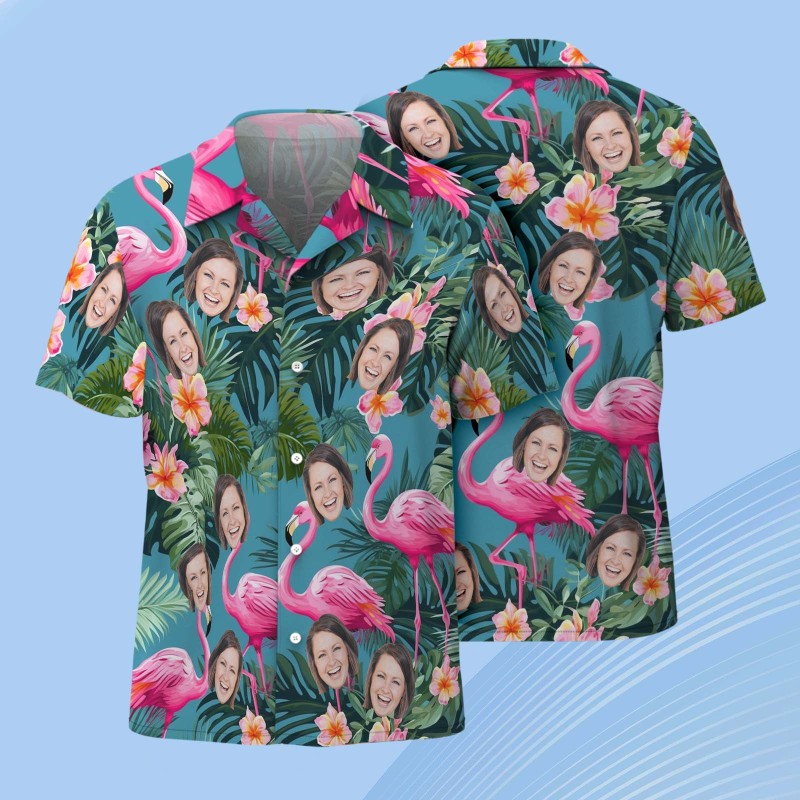 Custom Face Hawaiian Shirt Personalised Pink Flamingo Pattern Hawaiian Shirt Father's Day Gift