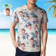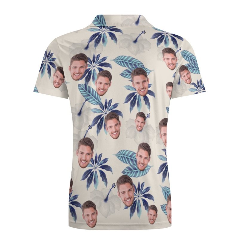 Custom Face Polo Shirt For Men Flowers and Leaves Personalized Hawaiian Golf Shirts