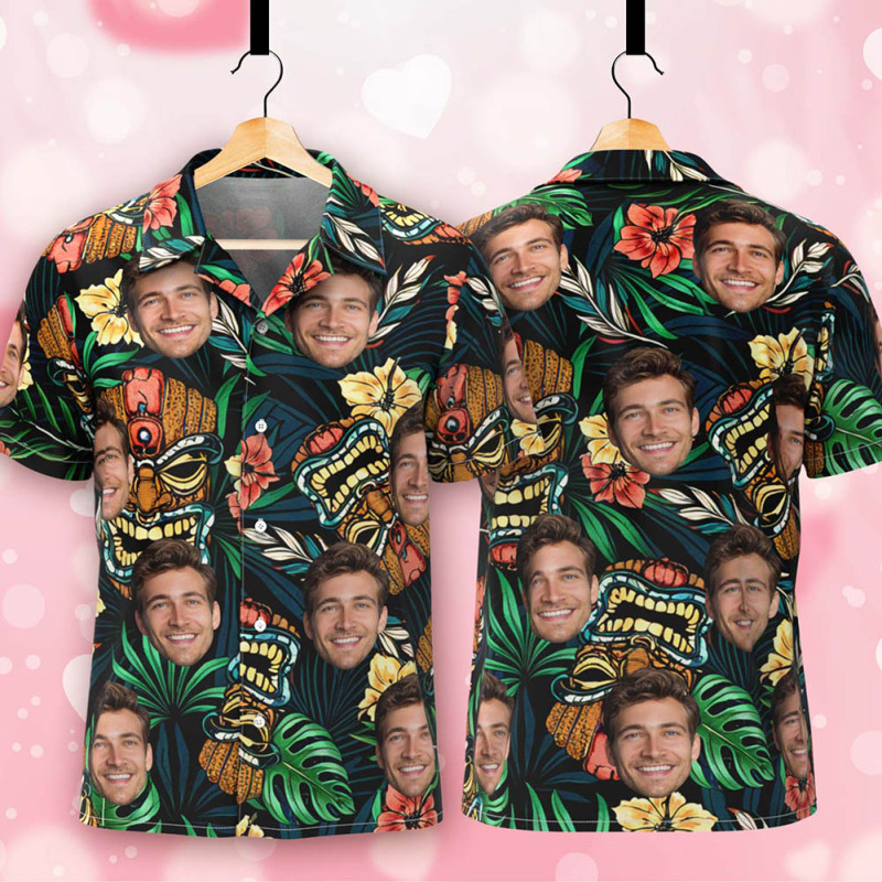 Custom Face Shirt Tiki Tropical Palm Personalized Hawaiian Aloha Shirt Vacation Party Outfit for Men