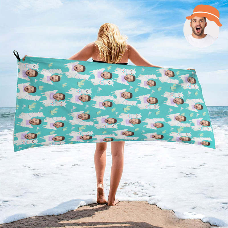Custom Faces Sheep Beach Towel Personalized Photo Beach Towel Funny Gift