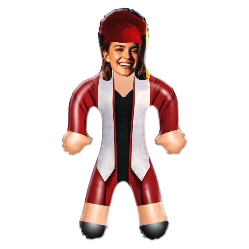 Custom Inflatable Doll Red Gown & Pirate Hat Style Graduation Personalized Face Air Minime Doll