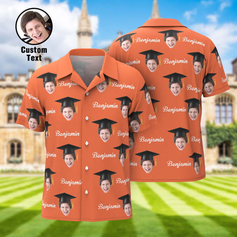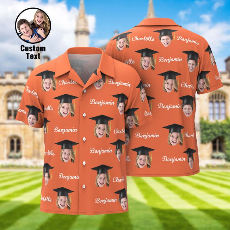Custom Men Hawaiian Shirt Personalized Face and Name Aloha Shirts for Graduation Party