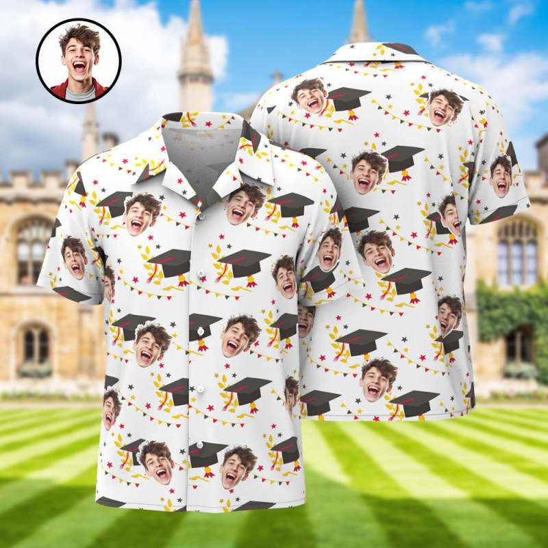 Custom Men Hawaiian Shirt with Face and Name Personalized Graduation Party Aloha Shirts