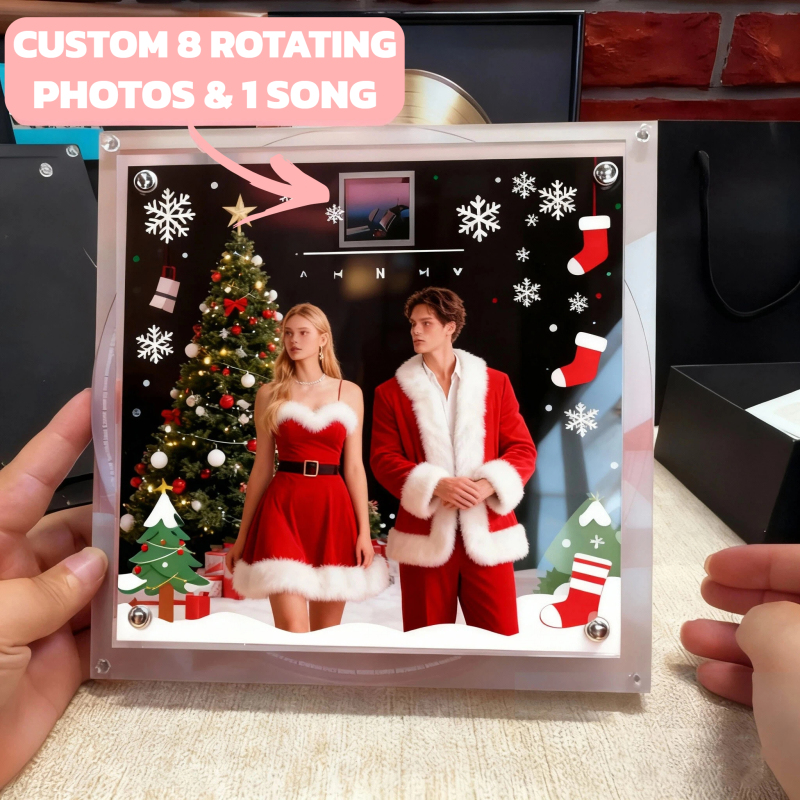 With one song and eight photos, this display tells your story in both sound and image - an elegant Christmas personalized music décor and a heartfelt gift for couples, friends, or family.
