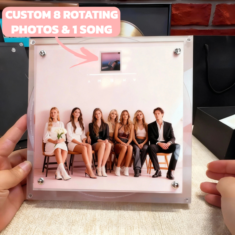 Transform your favorite song and memories into a custom rotating music art piece.