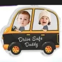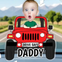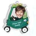 Crafted with whimsy and affection, this car hanging features a charming cartoon depiction of a baby driving a colorful car. The inclusion of the baby's portrait adds a personal touch, capturing a moment of joy and innocence while symbolizing the precious role of fatherhood. Additionally, the inscription 'Drive safe, daddy' serves as a loving reminder for the recipient to prioritize safety while on the road, emphasizing the importance of family well-being.