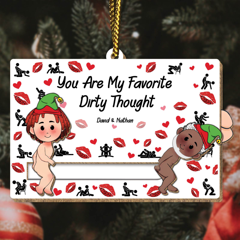 Surprise your partner with this hilarious and heartfelt personalized wooden slider ornament. Professionally printed on high-quality wood, the sliding mechanism reveals a cheeky message and your custom names – making it the perfect keepsake for couples who love to laugh.