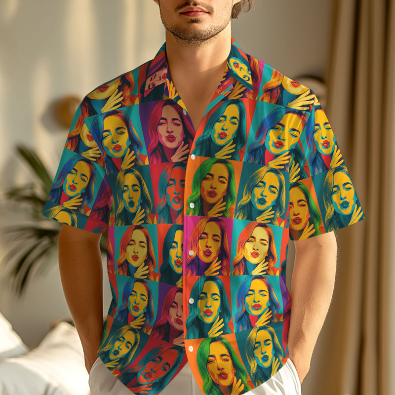 Home / Pop Art Custom Face Hawaiian Shirt Bold Colorful Pattern Fun Personalized Gift