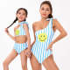 Smiley One Piece Bikini Striped Parent-Child Swimsuit