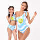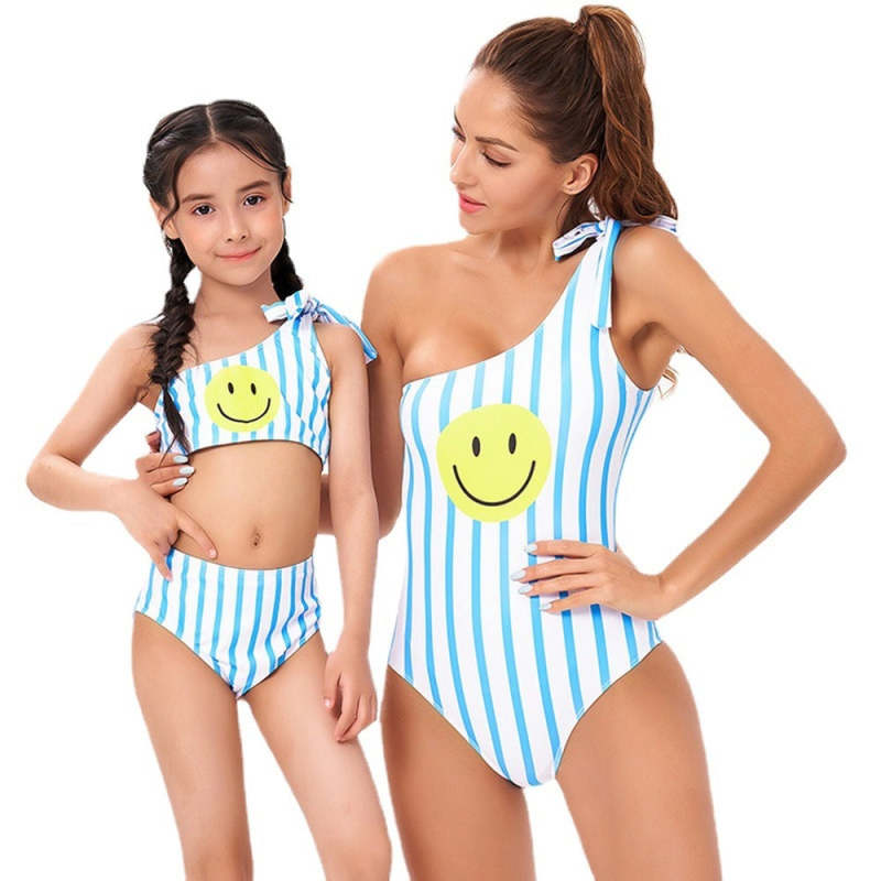 Home / Smiley One Piece Bikini Striped Parent-Child Swimsuit